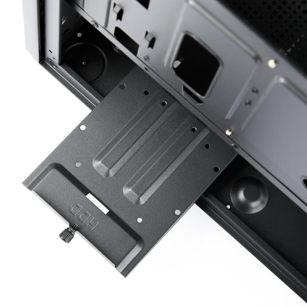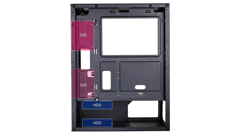 Case có thể gắn được 2 HDD lớn loại 3.5″ + thêm 2 ssd 2.5″. Hoặc là 4 ssd 2.5″