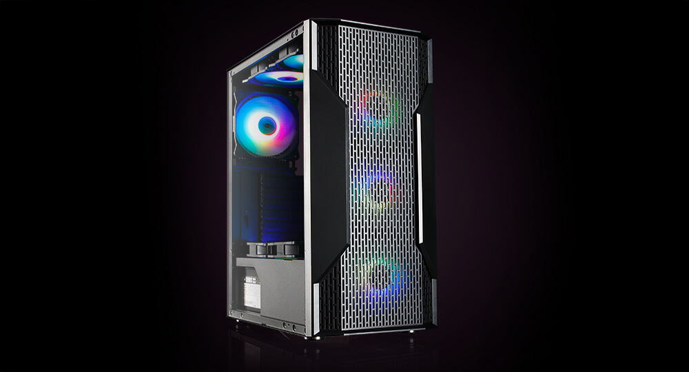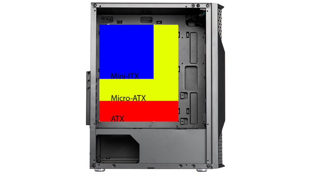 Khung case theo chuẩn Mid-Tower, hỗ trợ tốt các kích cỡ main: Mini-ITX, Micro ATX và ATX chuẩn