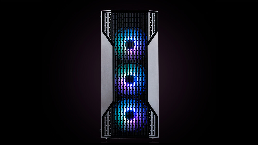 Mặt nạ trước gia công chắc chắn, nhưng tháo ra tương đối dễ dàng. Phía trước có thể lắp 2 quạt 14cm hoặc 3 quạt 12cm, nên gắn 3 quạt 12cm cho cân đối và đẹp.