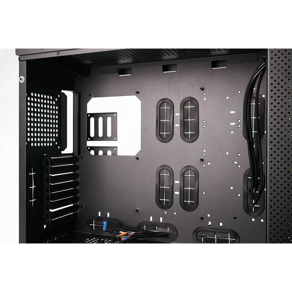 Infinity Zeus được thiết kế tối ưu cho airflow, hỗ trợ gắn tối đa 3 quạt 120 mm ở mặt trên, 4 quạt 120 mm phía trước và một quạt 120/140 mm phía sau. Kết hợp cùng khả năng lắp radiator 240/360 mm, case đảm bảo khả năng làm mát mạnh mẽ và ổn định ngay cả với hệ thống cấu hình cao.