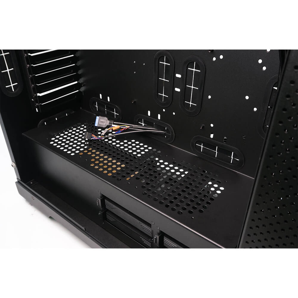 Với kích thước lớn, Infinity Zeus có thể lắp card đồ họa dài tối đa 460 mm và tản nhiệt khí CPU cao tới 180 mm. Ngoài ra, case hỗ trợ radiator nước 240/360 mm ở cả mặt trước và mặt trên, giúp duy trì khả năng làm mát hiệu quả cho các hệ thống hiệu năng cao.