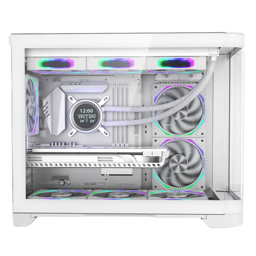 | Reserved Fan Ports: | Rear: 1x120mm (optional) Top: 3×120 mm (optional) Side: 2×120 mm (optional) Bottom: 3×120 mm (optional) |