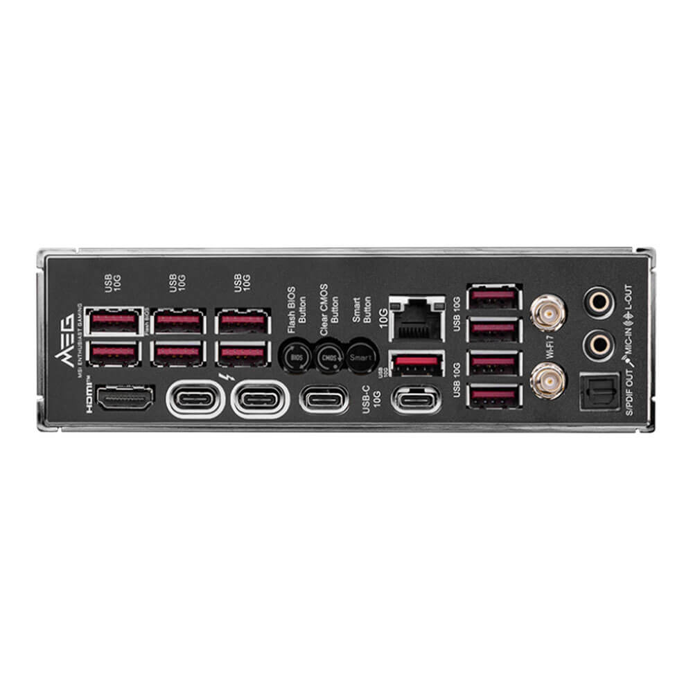 | ONBOARD GRAPHICS | 1x HDMI™ Support HDMITM 2.1 with FRL port, maximum resolution of 8K 60Hz* 2x Type-C DisplayPort Thunderbolt™ 4 ports, supporting DisplayPort 2.1 with UHBR20 over USB Type-C, with a maximum resolution of 4K@120Hz / 8K@60Hz** Available only on processors featuring integrated graphics. Graphics specifications may vary depending on the CPU installed. |