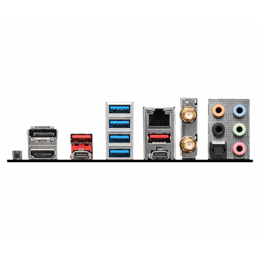 | BACK PANEL PORTS | DisplayPort USB 3.2 Gen 2 10Gbps (Type-A) USB 3.2 Gen 1 5Gbps (Type-A) 2.5G LAN Wi-Fi / Bluetooth Audio connectors Flash BIOS Button HDMI™ USB 3.2 Gen 2 10Gbps (Type-C Display port) USB 3.2 Gen 2×2 20Gbps (Type-C) USB 3.2 Gen 2 10Gbps (Type-A) S/PDIF-OUT |