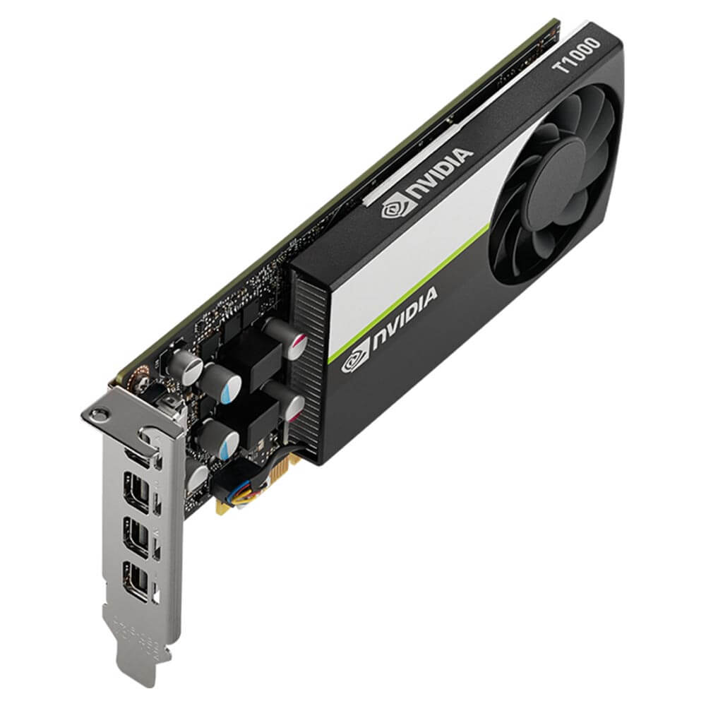 The NVIDIA® T1000, built on the NVIDIA TuringTM GPU architecture, is a powerful, low profile solution that delivers the full-size features, performance and capabilities required by demanding professional applications in a compact graphics card. Featuring 896 CUDA cores and 4GB of GDDR6 memory, the T1000 enables professionals to tackle multi-app workflows, from 3D modeling to video editing. Support for up to four 5K displays gives you the expansive visual workspace to view your work in stunning detail.