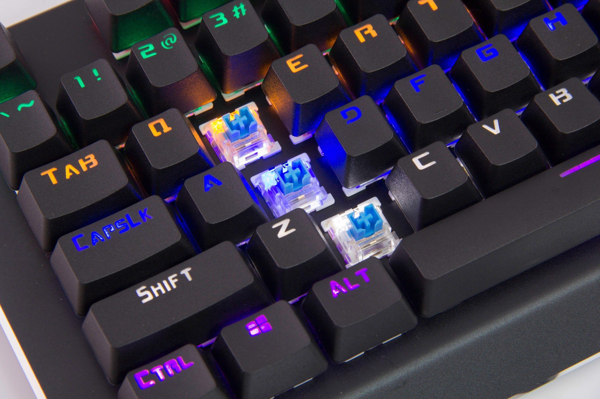 LED của phím được hàn trên bo, với khung switch trong suốt, cho hiệu ứng đèn led sáng rất tốt. Sáng đều nổi bật hơn hẳn.