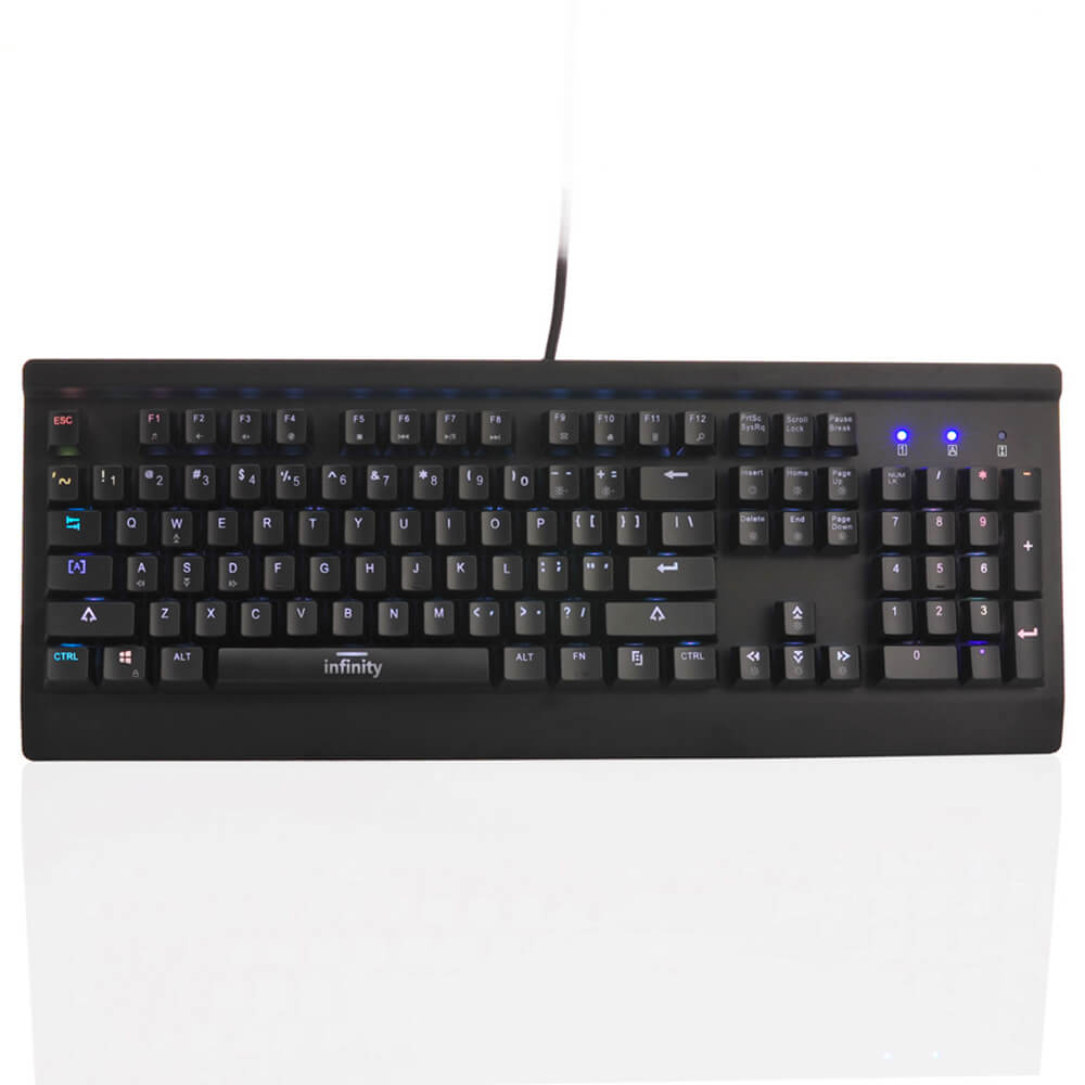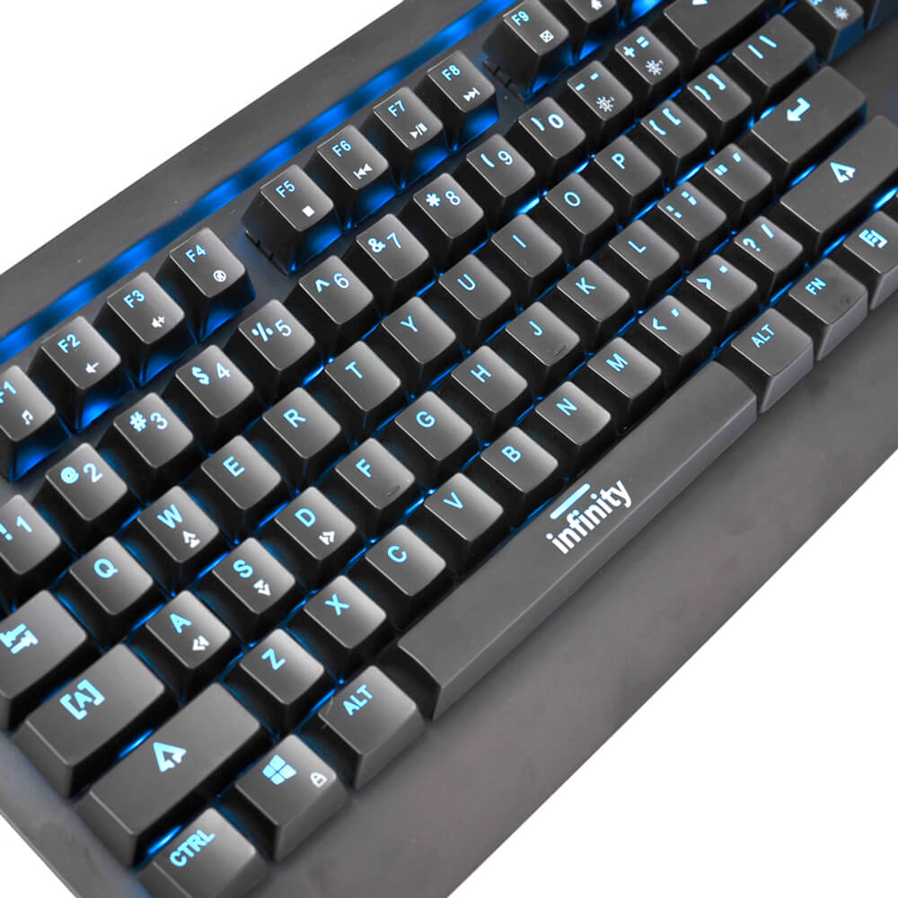 Nói thêm về thiết kế, Infinity Azure sử dụng kiểu high-profile thường thấy trên các bàn phím gaming. Ưu điểm của thiết kế này là dễ vệ sinh, giảm tiếng ồn do keycap tạo ra đồng thời cũng mang lại hiệu ứng LED đẹp mắt hơn.