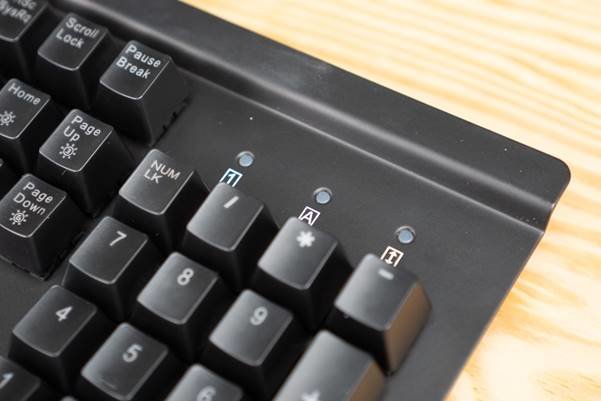 Góc trên bên trái phím là bộ 3 đèn báo quen thuộc, phần này cũng không có gì để nói nhiều.