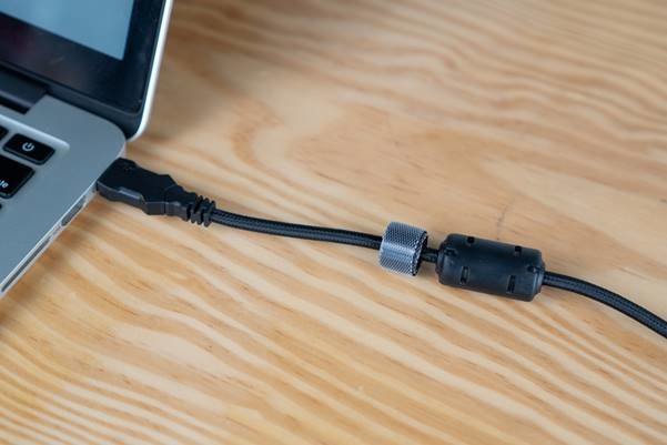 Về phần dây kết nối, chúng ta có một chiếc dây được bọc dù khá cứng cáp, đầu cắm USB được mạ vàng và có cục chống nhiễu.