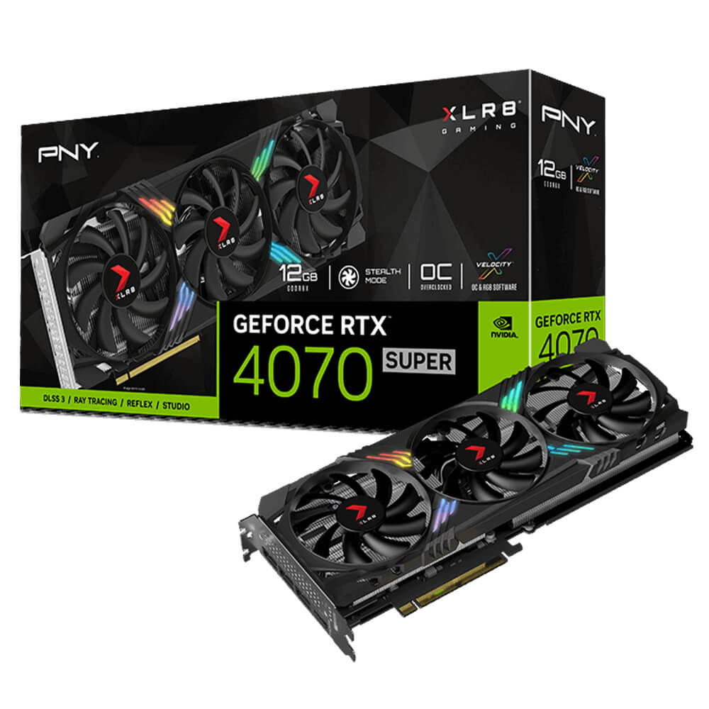 PNY GeForce RTX™ 4070 SUPER 12GB XLR8 Gaming VERTO™ EPIC-X RGB™ Overclocked Triple Fan DLSS 3 – 12GB GDDR6X