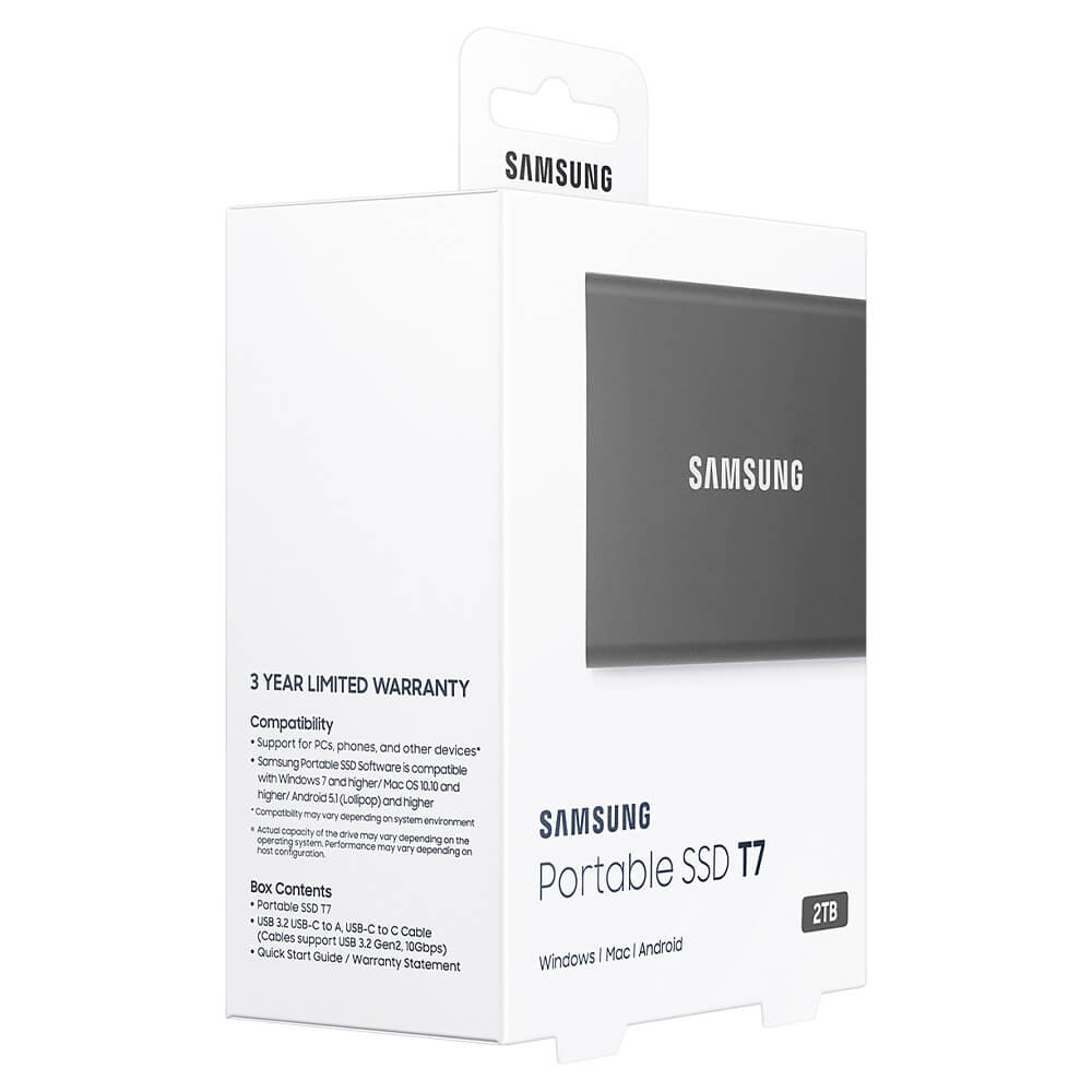 Samsung T7 Portable 2TB Gray – Portable SSD USB 3.2 Gen 2 – MU-PC2T0T/WW