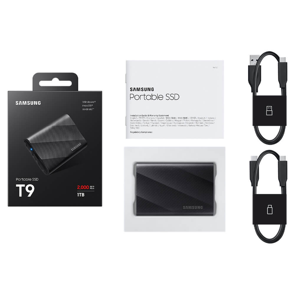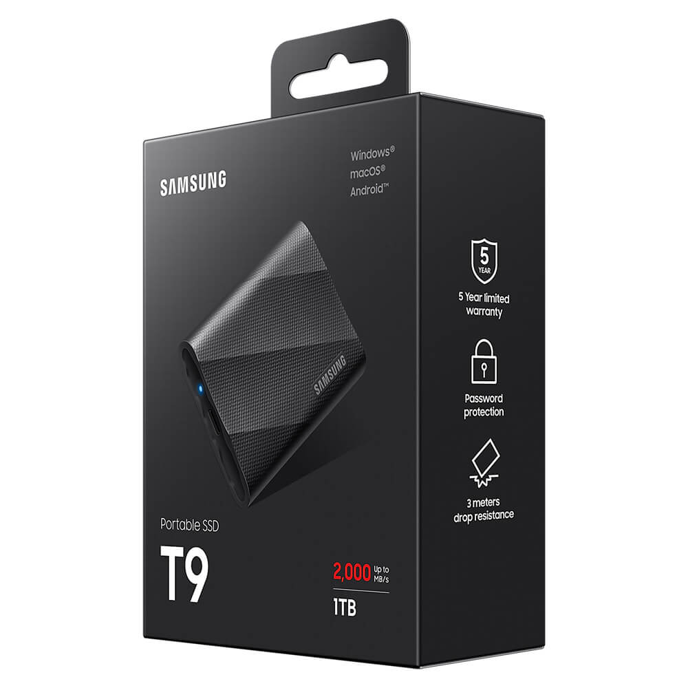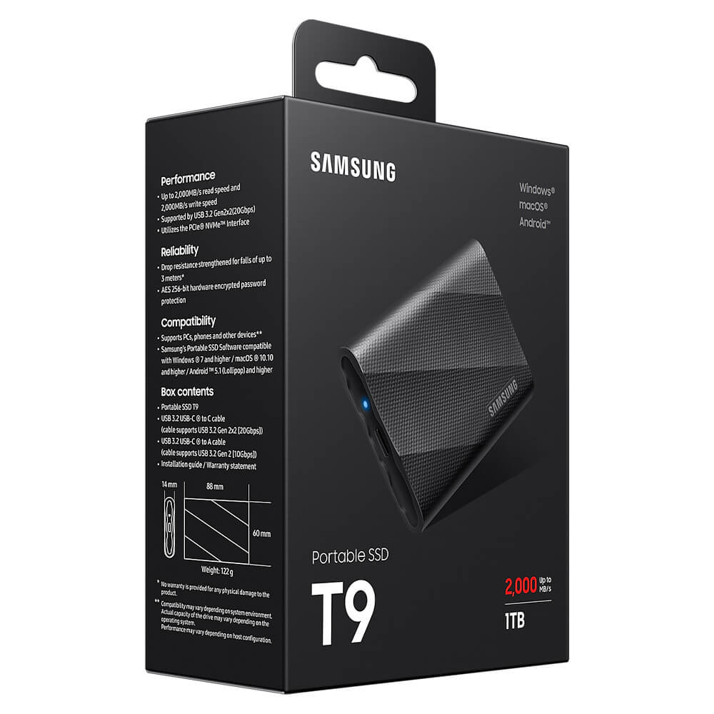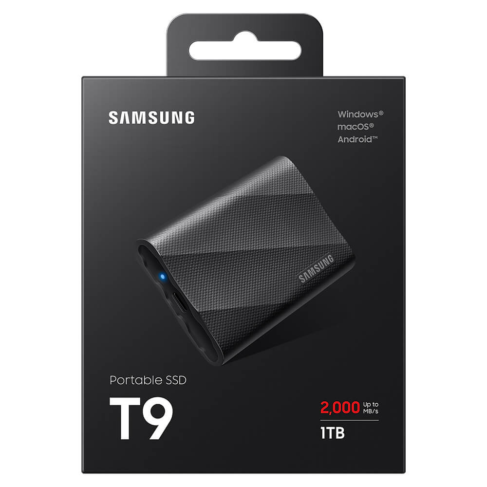 Samsung T9 Portable 1TB Black – Portable SSD USB 3.2 Gen 2×2 – MU-PG1T0B/WW