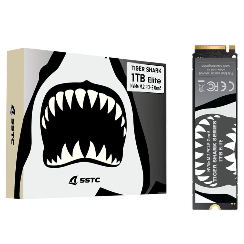 - SSTC Tiger Shark là ổ đĩa thể rắn ở dạng M.2 2280 Gen 5, ra mắt năm 2023. Ổ đĩa này có các mức dung lượng từ 1 TB đến 4 TB. Với phiên bản thường 1 TB, nay ra mắt phiên bản ELITE với tốc độ đọc ghi vượt trội hơn. Với phần còn lại của hệ thống, giao diện SSTC Tiger Shark ELITE sử dụng kết nối PCI-Express 5.0 x4. Bộ điều khiển SSD là PS5026-E26 Pro của Phison, có sẵn chip bộ đệm DRAM. SSTC đã cài đặt flash TLC NAND 232 lớp trên Tiger Shark, các chip flash được sản xuất bởi Micron.