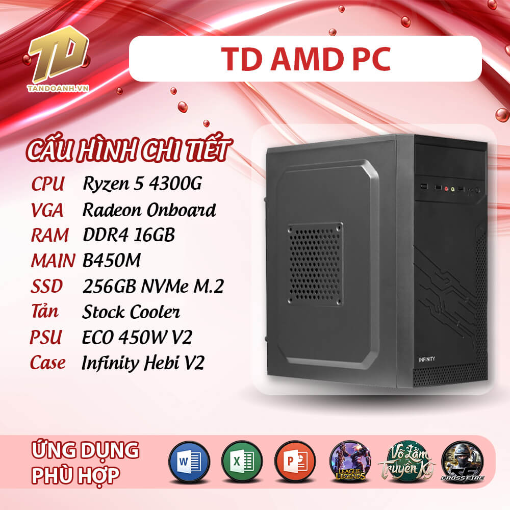 | CPU | AMD Ryzen 5 4300G 3.8 GHz – 4.0 GHz 4 Cores 8 Threads Socket AM4 |