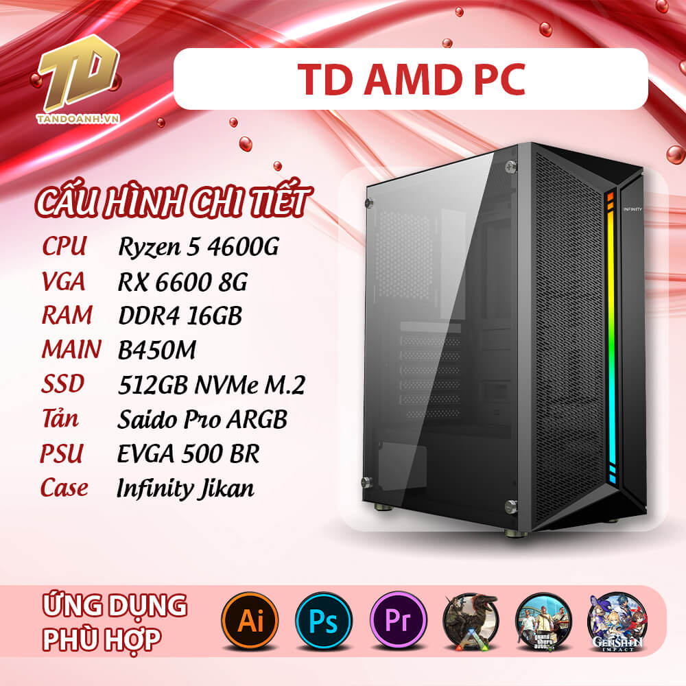 | CPU | AMD Ryzen 5 4600G 3.7 GHz – 4.2 GHz 6 Cores 12 Threads Socket AM4 |