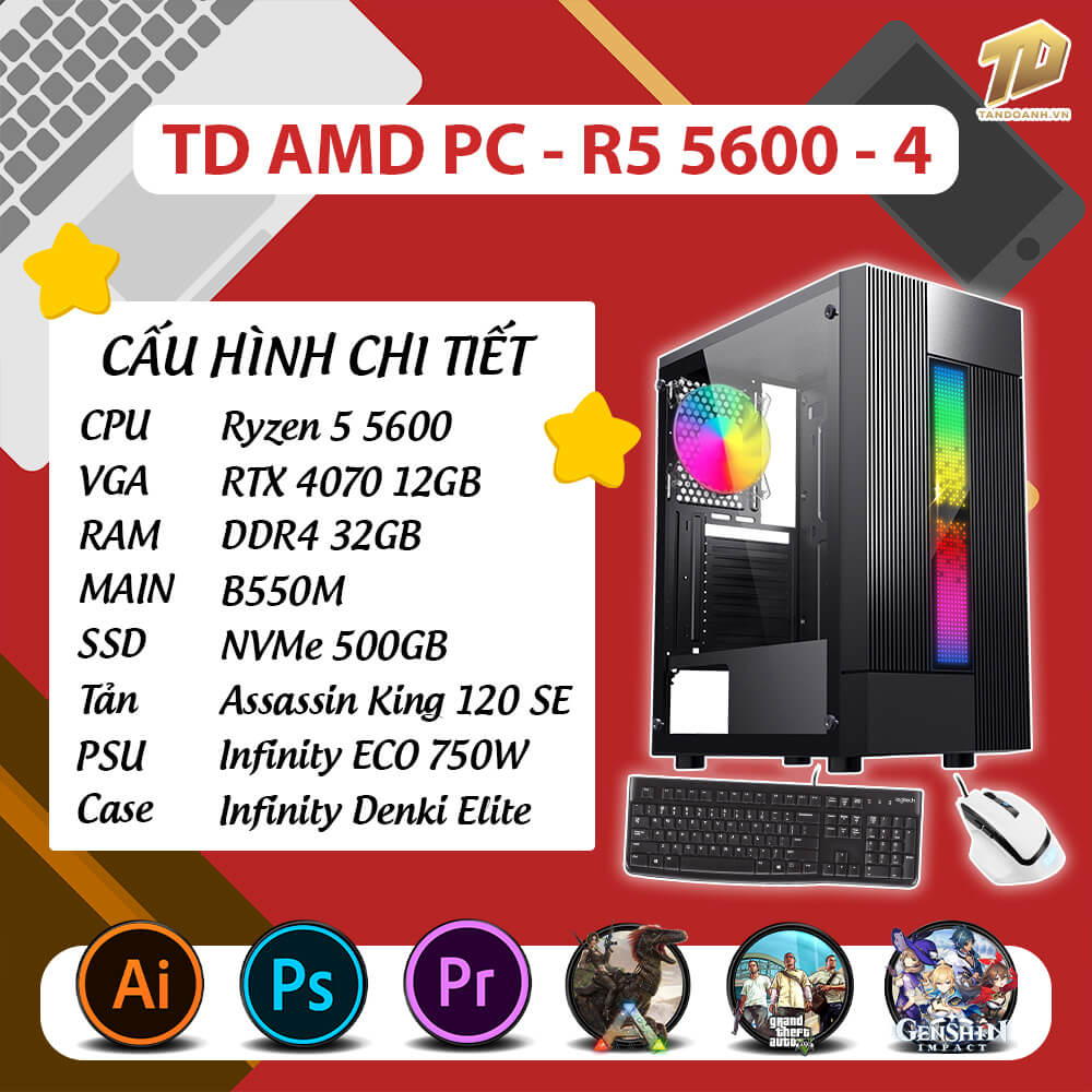 | CPU | AMD Ryzen 5 5600 3.5 GHz – 4.4 GHz 6 Cores 12 Threads Socket AM4 |