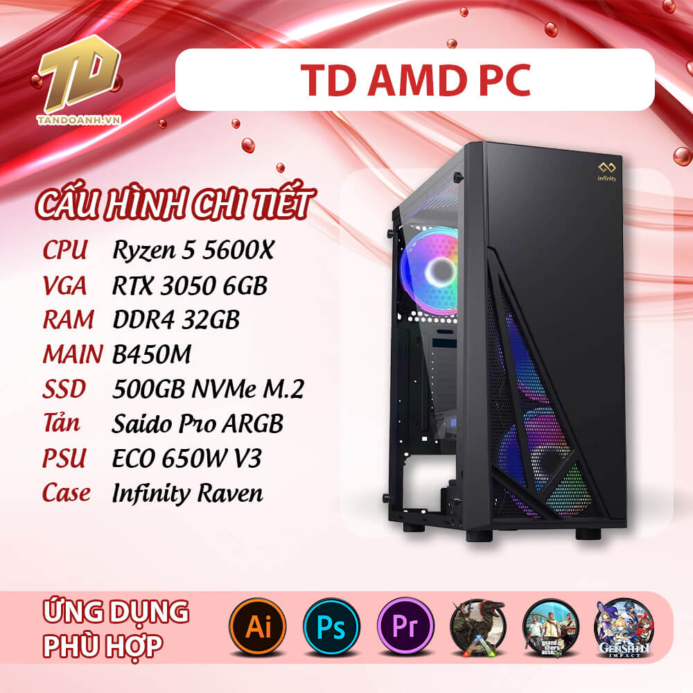 | Thùng máy | Infinity Raven – Mid Tower Case (No Fan) |