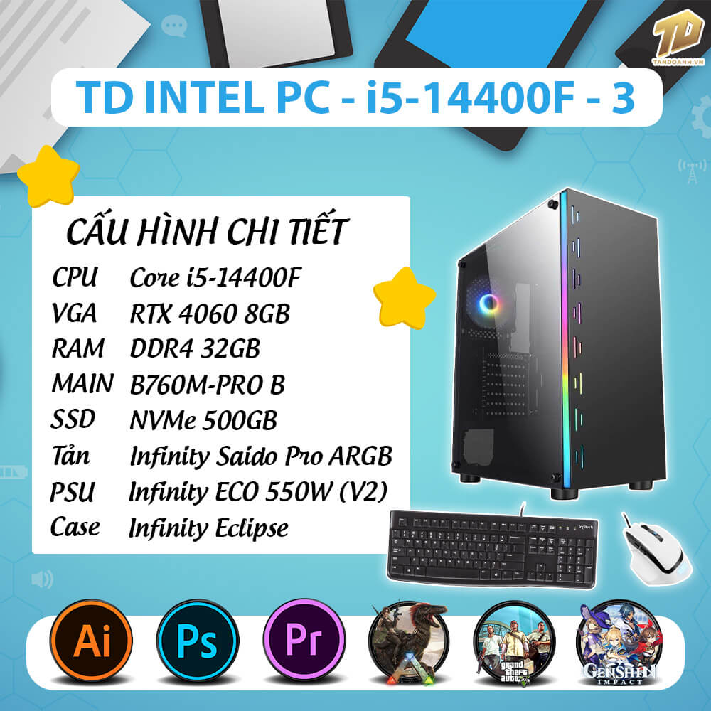 | CPU | TRAY – Intel Core i5-14400F 10C/16T 20MB Upto 4.7GHz – Socket 1700 |