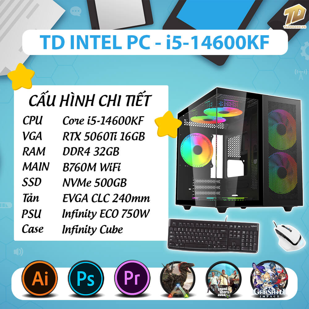 | CPU | TRAY – Intel Core I5-14600KF 14C/20T 24MB up to 5.3GHz Socket 1700 |
