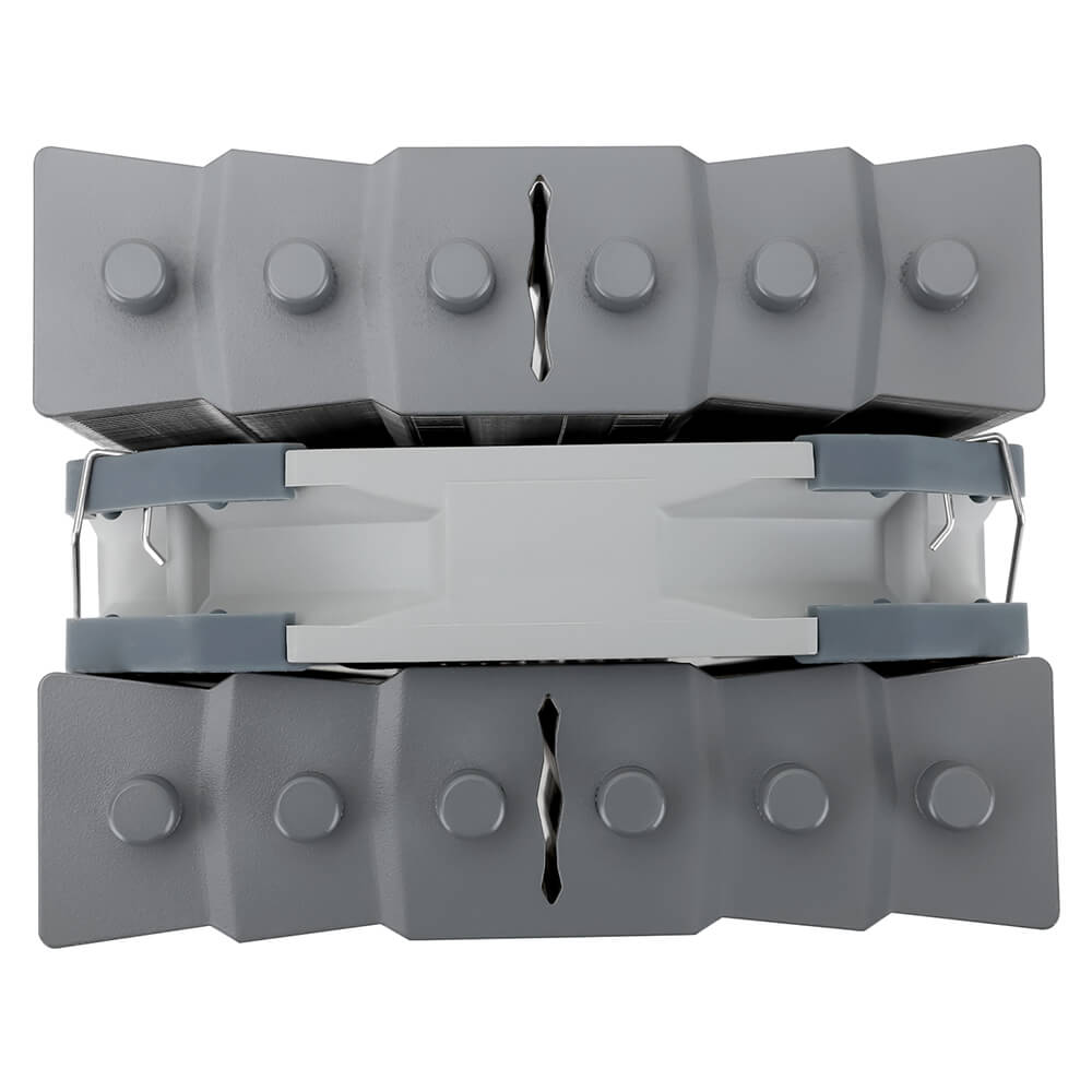 Tản nhiệt sử dụng 6 ống heatpipe bằng đồng φ6 mm (mạ nickel) truyền nhiệt từ baseplate đồng C1100 nguyên chất. Baseplate tiếp xúc trực tiếp (direct-touch) với đầu đế CPU giúp truyền nhiệt nhanh hơn, còn các lá tản nhôm có độ dày 0,4 mm, khe hở giữa lá là 1,6 mm để cân bằng lưu thông khí.