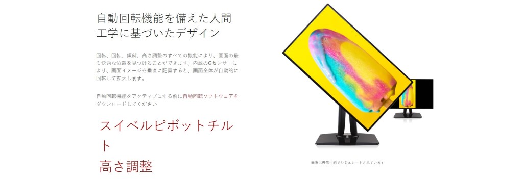 Đầy đủ chức năng quay, xoay, nghiêng và điều chỉnh độ cao cho phép bạn tìm ra vị trí thoải mái nhất của màn hình. Cảm biến G tích hợp cho phép hình ảnh màn hình tự động xoay và mở rộng toàn màn hình khi được định vị theo chiều dọc.