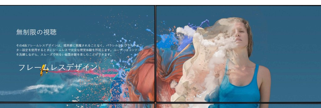 Thiết kế không khung 4 mặt của nó tạo ra trải nghiệm hình ảnh liền mạch và đầy đủ khi sử dụng các thiết lập song song và đa màn hình mà không bị phân tâm do đường viền. Người dùng có thể tận hưởng trải nghiệm chỉnh sửa sáng và mịn khi tinh chỉnh nội dung.
